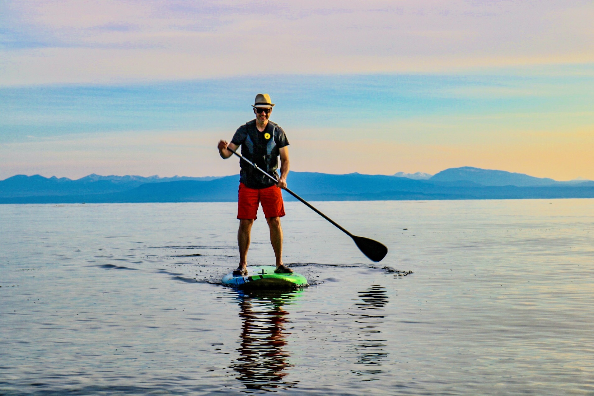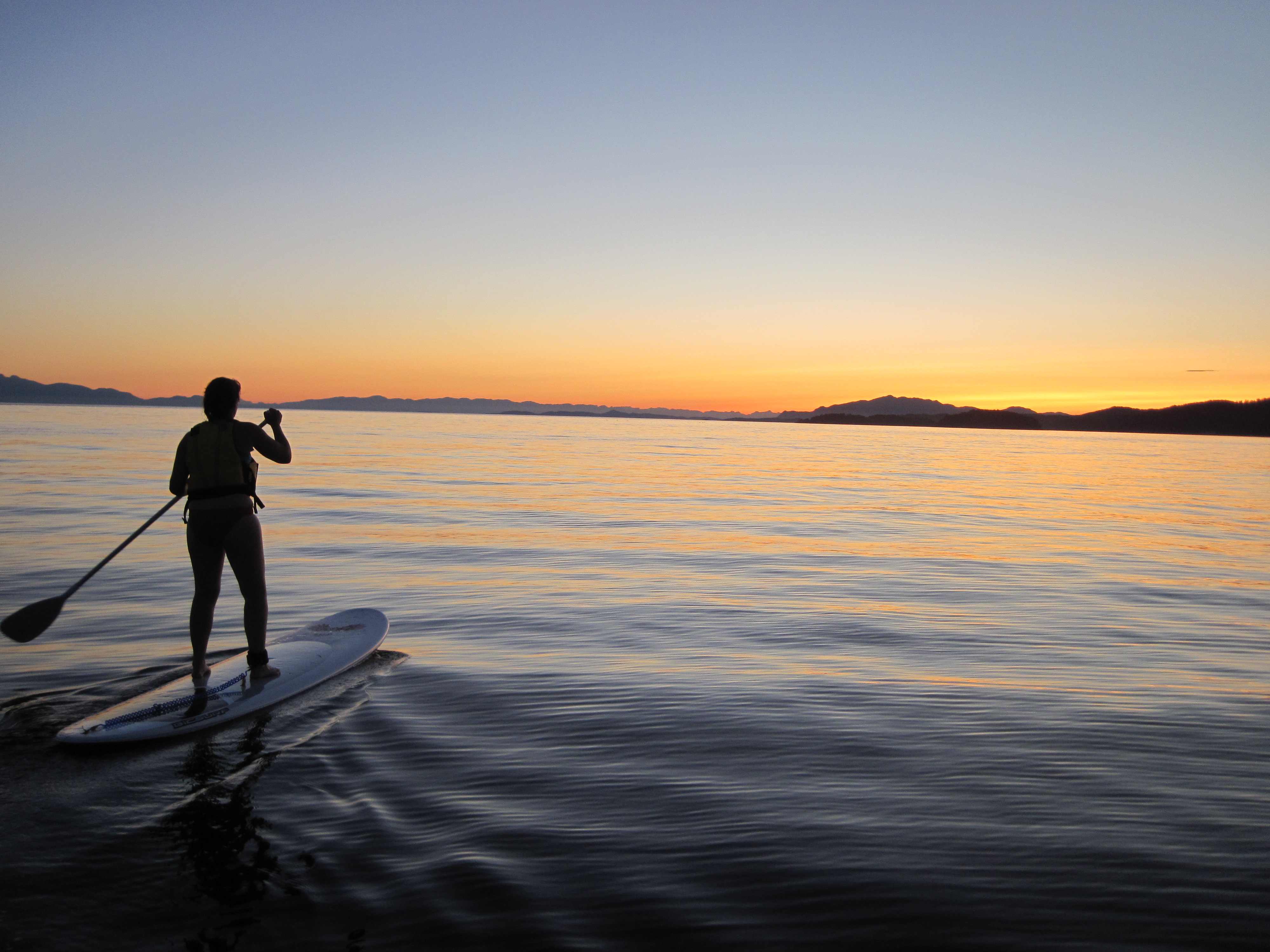 One evening last year, Jamie Mani was driving home late after coaching at Chatelech Secondary, where he teaches. Awed by the beautiful sunset at Davis Bay, he instinctively pulled over to inflate his stand-up paddleboard. A few minutes later, he was plying the calm ocean with just the setting sun and a rising full moon for company: alone, or so he thought.