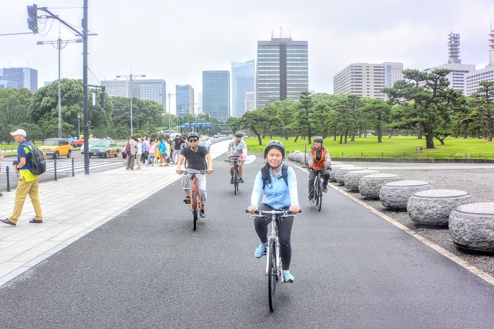 Cycling near Japan’s Imperial Palace in Tokyo’s Chiyoda ward during a six-and-a-half hour guided tour.
