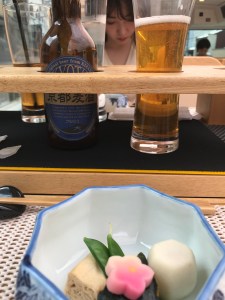 Using small spatulas some nifty flipping skills are required to cook your okonomiyaki evenly, but the beer served during the class only seemed to enhance our manual dexterity. And there were no complaints about the finished serving, which tasted as good as the Hiroshima-yaki we’d eaten in a restaurant the night before!