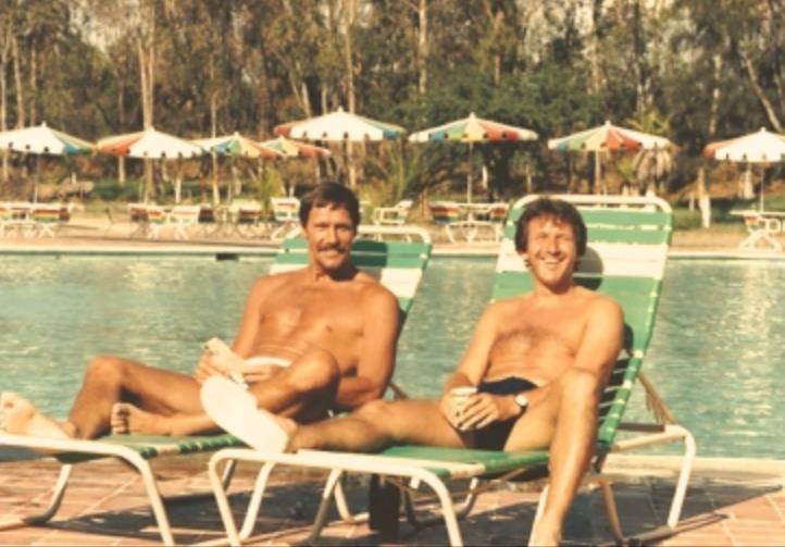 Tony Waiters with national team administrator, Les Wilson, relaxing at the 1986 World Cup. Photo courtesy Tony Waiters