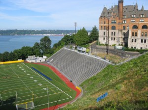 Best of all, for fans of 1999 movie 10 Things I hate About You, Tacoma is home to Stadium High School, one of the most impressive-looking schools in all of North America. All brick turrets and Gothic spires, Stadium High School stands on a bluff over looking Tacoma and towers over a steep-sided stadium. Ryan and I tried to get in to kick a ball around, but it was all locked up. 10 Things I hate About You features Claire Danes and Heath Ledger (RIP) and was based on Shakespeare’s Taming of The Shrew.