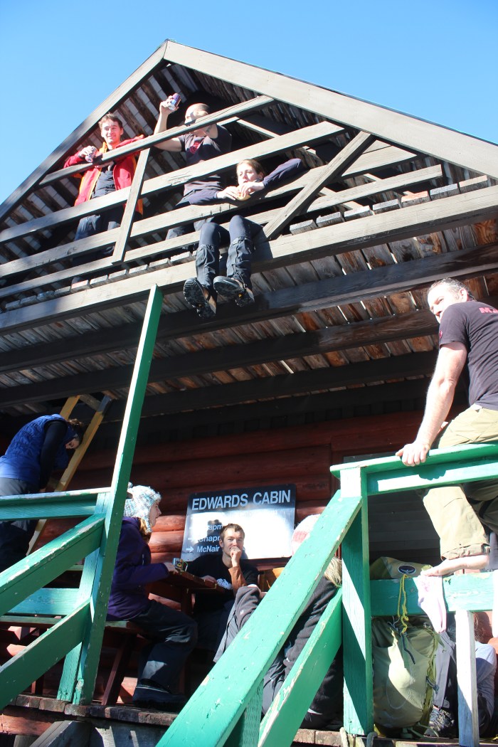 Lower Mainlanders enjoying lunch at Edwards Cabin.