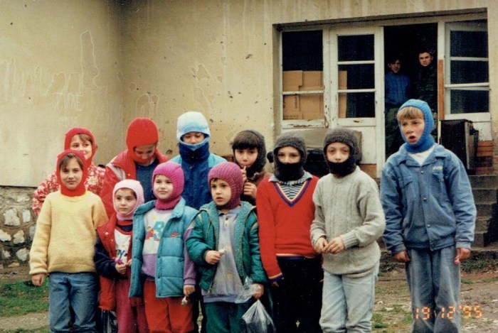 “I pulled into this empty street and immediately all these kids appeared,” recalls Brian. “Through gestures, I asked them to help unload boxes of stuff. Two girls joined the queue and these Bosnian kids started waving them away, telling me that these girls couldn’t hear and couldn’t speak.