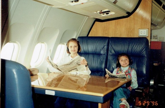“There’s a wonderful photograph of the girls on the plane,” says Brian. “It amuses me because they’re pretending to read a newspaper. They loved reading the paper and they really enjoyed taking pictures of me with my camera.”