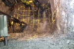 - A jumbo drill at work, a kilometre below Flin Flon.
